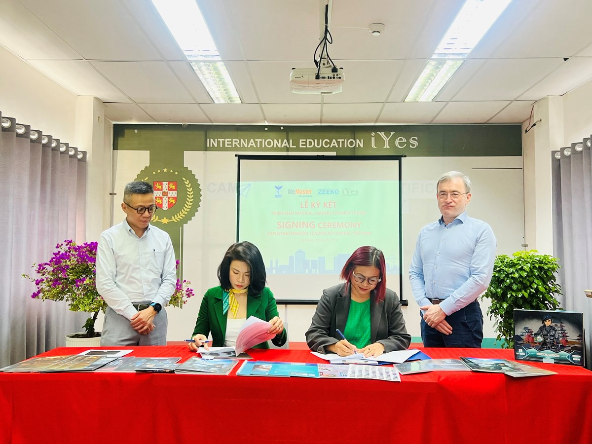 Trong khuôn khổ lễ ký kết, Zeeko - Đơn vị chủ quản chương trình 𝗠𝗮𝗴𝗶𝗰𝗮𝗹 𝗟𝗲𝗮𝗱𝗲𝗿 - 𝗡𝗵𝗮̀ 𝗹𝗮̃𝗻𝗵 đ𝗮̣𝗼 𝘁𝗮̀𝗶 𝗯𝗮 và Viện Công nghệ giáo dục , iYes và WeMaster đã chính thức ra mắt và triển khai chương trình Magical Leaders tại khu vực miền Trung.
